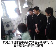 長岡市にある社団法人新潟県環境衛生中央研究所と国立大学法法人長岡技術科学大学を訪問しました。新潟県環境衛生中央研究所では土壌試料の前処理および土壌汚染対策法指定有害物質の分析方法について学習しました。